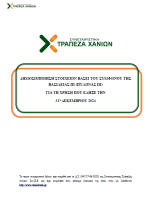 The following information is publicized in the context of the implementation of Basel III (Pillar III) rules, particularly Regulation (EU) 575/2013 and Law 4261/2014 on prudential requirements for credit institutions regarding their capital sufficiency, the risks they undertake and their management.